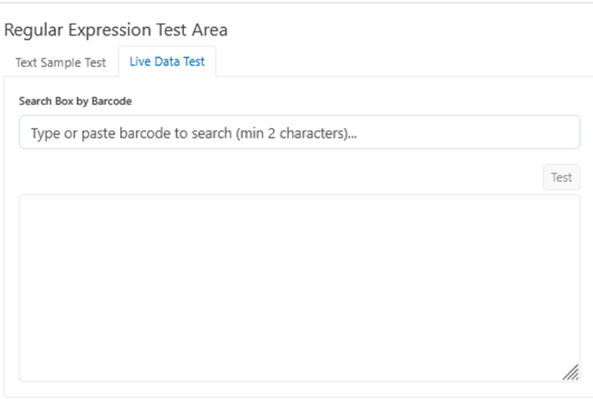 Test the regex by manually entering or pasting a Barcode into the search bar and selecting test.