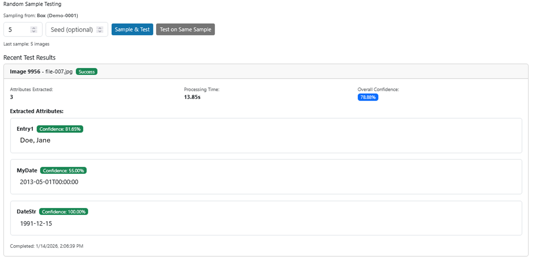 Enter or paste a box or list of boxes separated by a comma to run the test on. This method will still only test the images in a single box, but it allows you to run the extraction prompt against many randomly selected images.