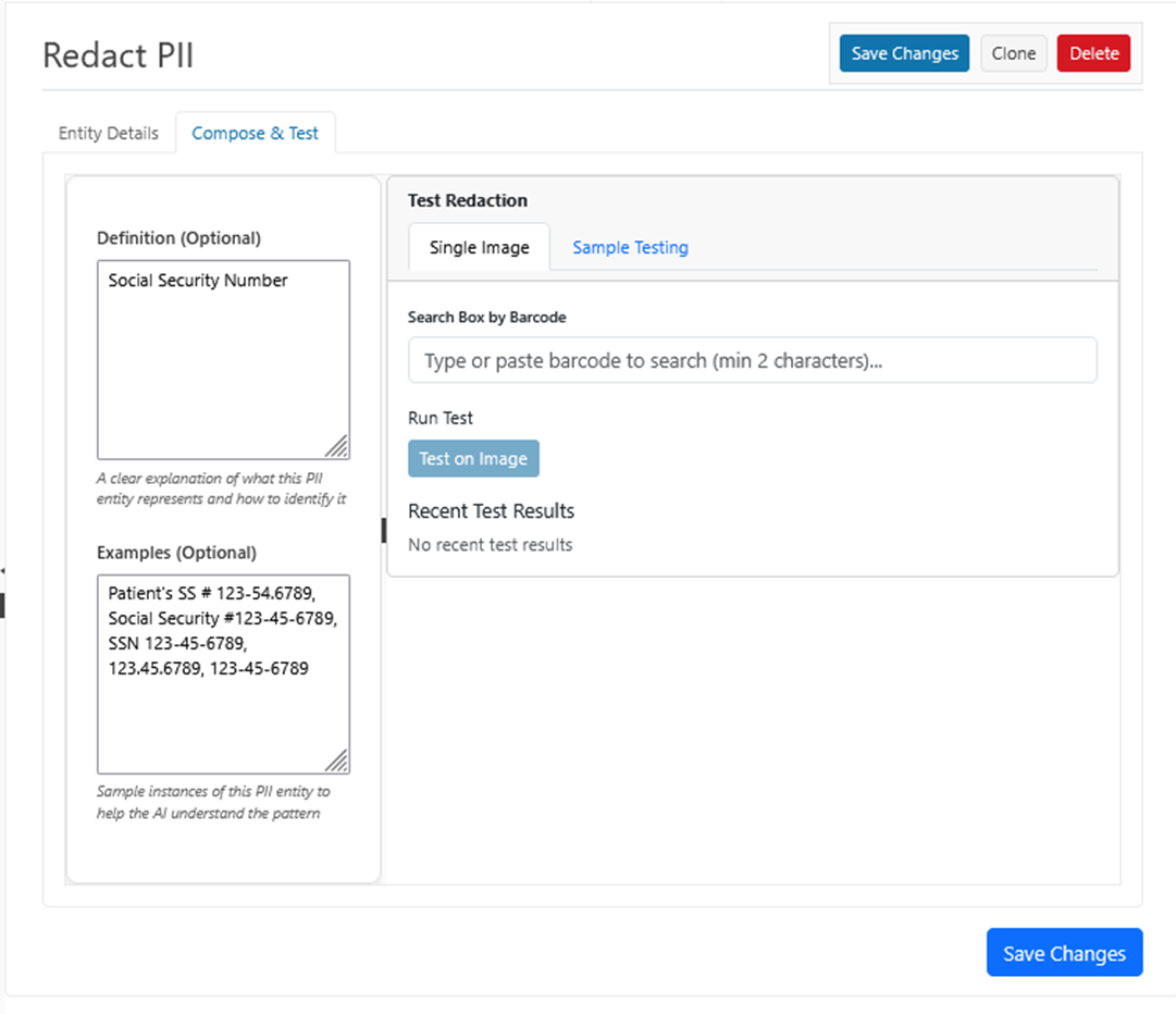 Sample Size - se the number of images to test, and the system will randomly select that number of images for testing the redaction prompt.
