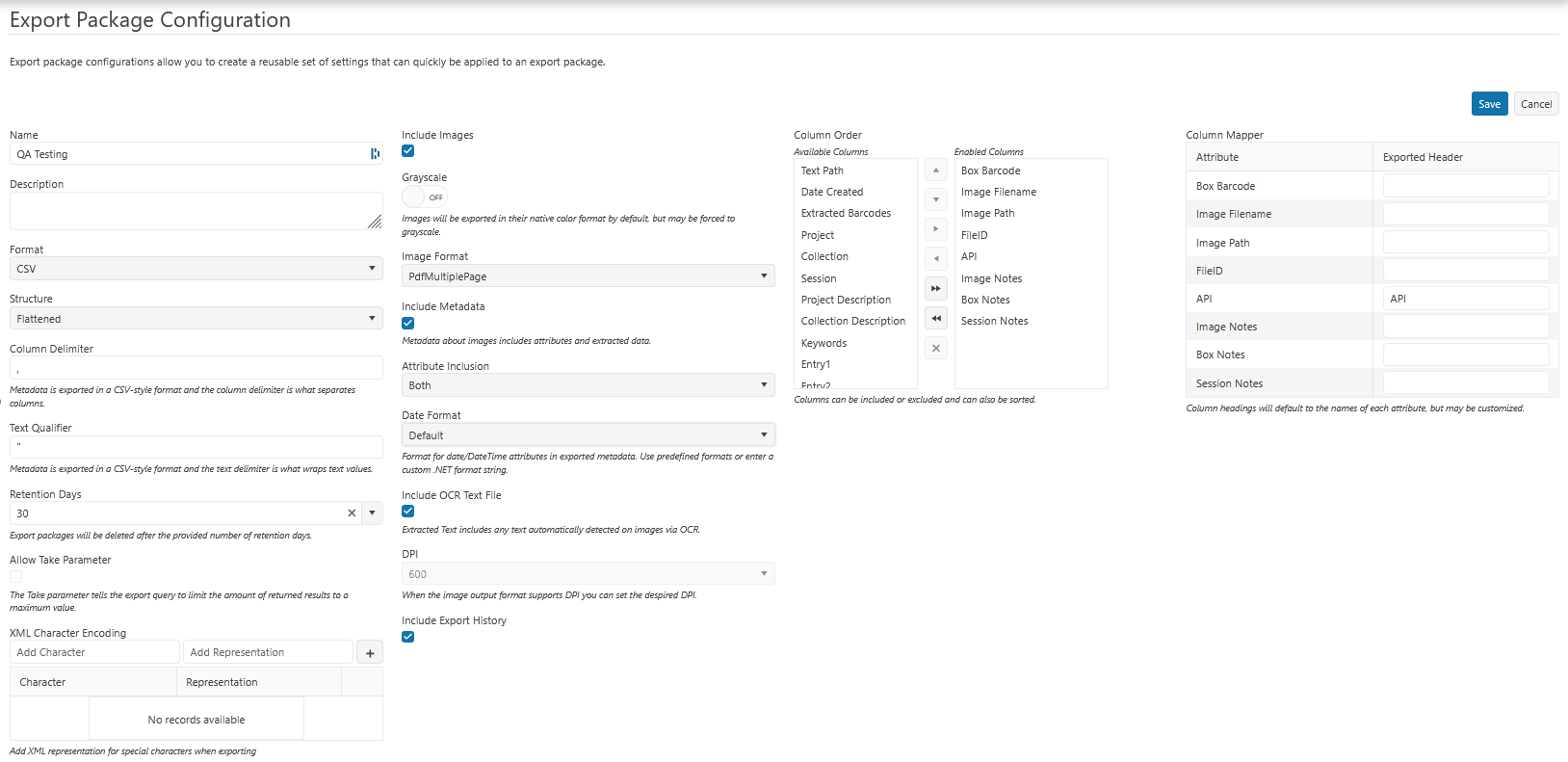 WIB™ Review supports various types of exports and formats. The Export Package Definition includes a Name, Description, Delimiter, Text Qualifier and defines what is exported and the format for some components of the package i.e., Image formats such as JPEG, PDF, Single-Page, Multi-page, etc.Name the export package in a manner that is standardized and allows for sorting and/or quickly identifying the content. For example, including the date in the Name will allow for sorting the Export Packages in date order. Keep the Name short and leverage the description for more detailed information about the export.